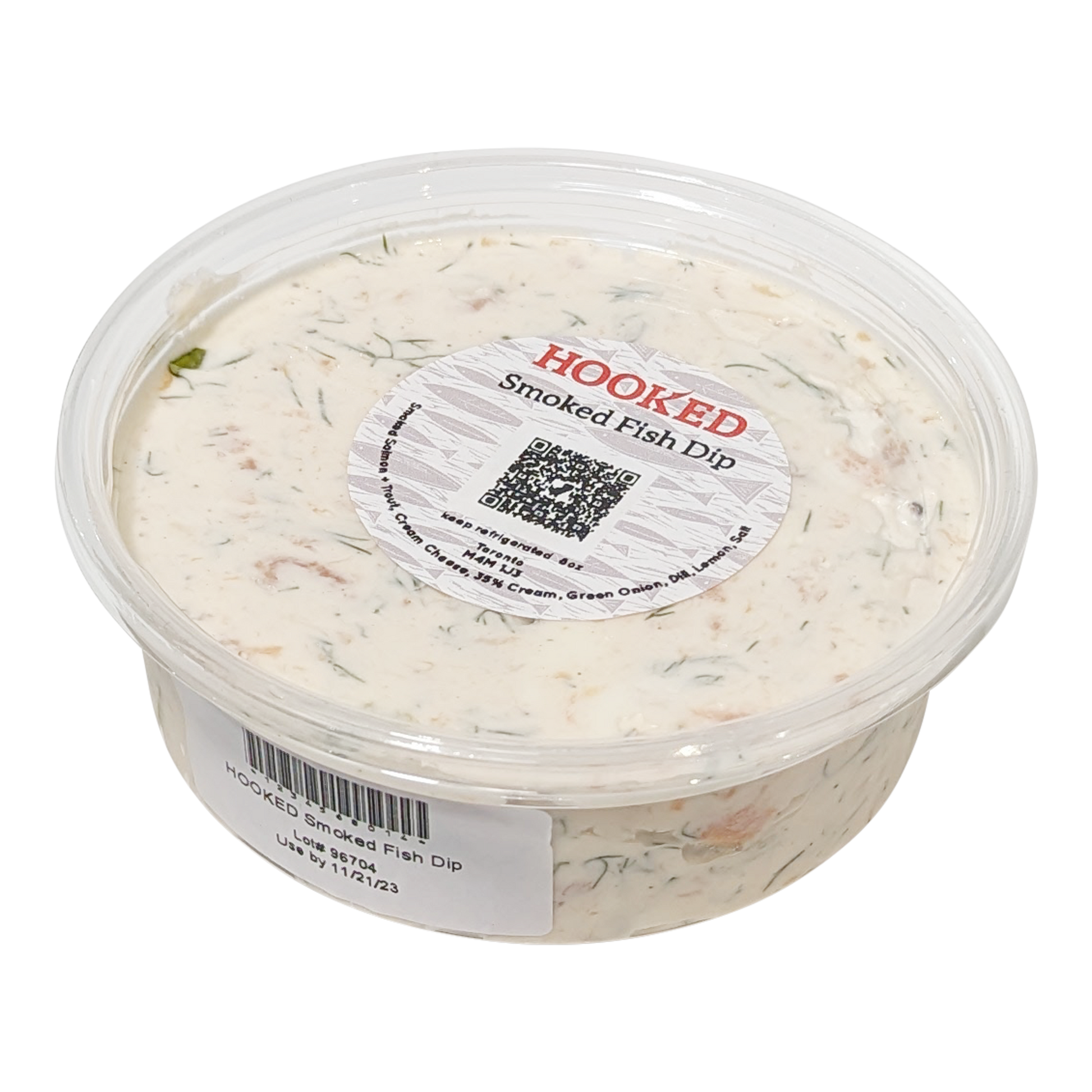 We take great pride in our house smoked fish at Hooked. A labour of love that has evolved over the ten years we have been in business. We take the tails of our smoked salmon and trout, whip them with cream cheese, buttermilk, cream, green onion, lemon and pepper to make a truly excellent dip. Enjoy with bagels, chips, on a cracker or shmeared over toasted pumpernickel.
